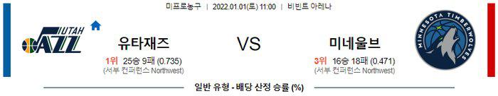 【NBA】 1월 1일 유타 재즈 vs 미네소타 팀버울브스