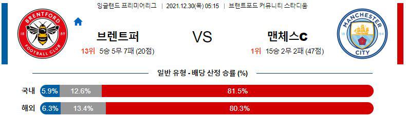 [프리미어리그] 12월30일 브렌트포드 (브렌트퍼드) vs 맨체스터 시티 (맨시티)