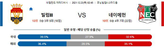 [에레디비시] 12월23일 빌럼II vs 네이메헌