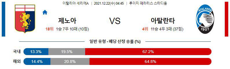 [세리에A] 12월 22일 제노아 CFC vs 아탈란타 BC