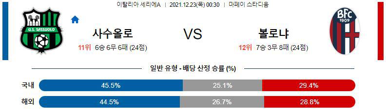 [세리에A] 12월 23일 US 사수올로 칼초 vs 볼로냐 FC 1909