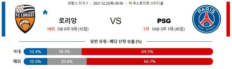 열람중 [리그앙] 12월 23일 FC 로리앙 vs 파리 생제르망(PSG) 메이저 2021.12.22 1058