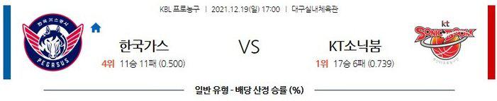 [KBL] 12월 19일 한국가스공사 vs KT 소닉붐