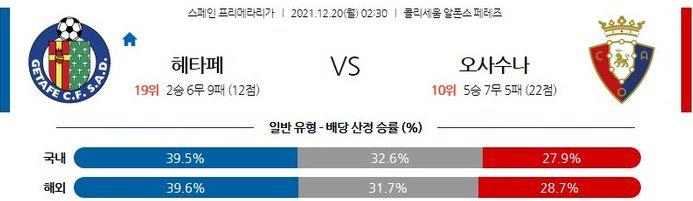 홈 이점을 갖춘 헤타페가 상대를 몰아칠 준비를 마쳤다. 최근 리그 무패 행진을 달리며 호조의 흐름을 잇는 중이었는데 지난 주중 코파 델 레이서 대패를 당하며 팀이 전반적으로 무너졌다. 오사수나는 원정서 탄탄한 경기 운영을 펼치지만 최근 부진의 골이 깊고, 맞대결서 유독 상대에 고전한 경우가 잦았다. 무승부, 언더(2.5점 기준)를 예상하는 쪽이 옳다.