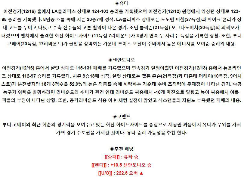【NBA】 12월18일 미네소타 vs LA레이커스