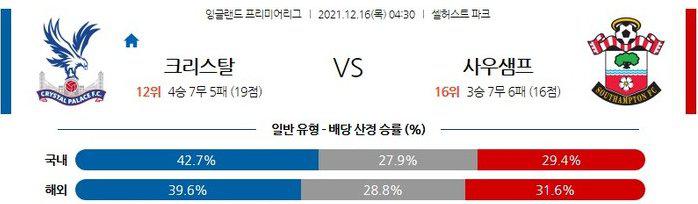 열람중 [프리미어리그] 12월16일 크리스탈팰리스 vs 사우샘프턴 메이저 2021.12.15 1013