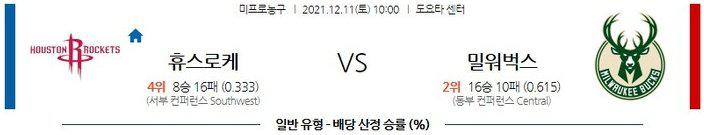[NBA] 12월 11일 휴스턴 로케츠 vs 밀워키 벅스