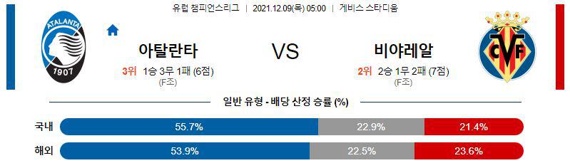 [유럽챔피언스리그] 12월9일 아탈란타 BC vs 비야레알 CF