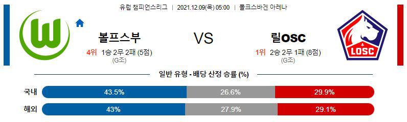 [유럽챔피언스리그] 12월9일 VfL 볼프스부르크 vs 릴 OSC