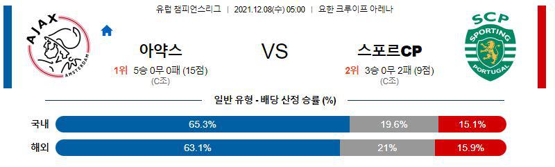 열람중 [유럽챔피언스리그] 12월8일 AFC 아약스 암스테르담 vs 스포르팅 CP 메이저 2021.12.07 1984