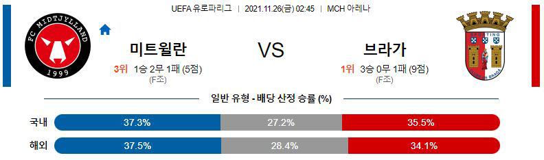 [UEFA유로파] 11월26일 FC 미트윌란 vs SC 브라가