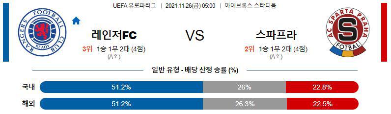 [UEFA유로파] 11월26일 레인저스 FC vs 스파르타 프라하