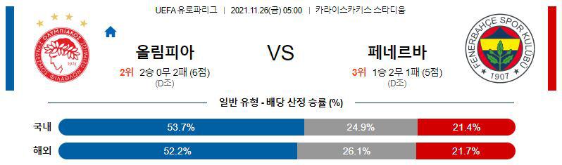 [UEFA유로파] 11월26일 올림피아코스 FC vs 페네르바체 SK