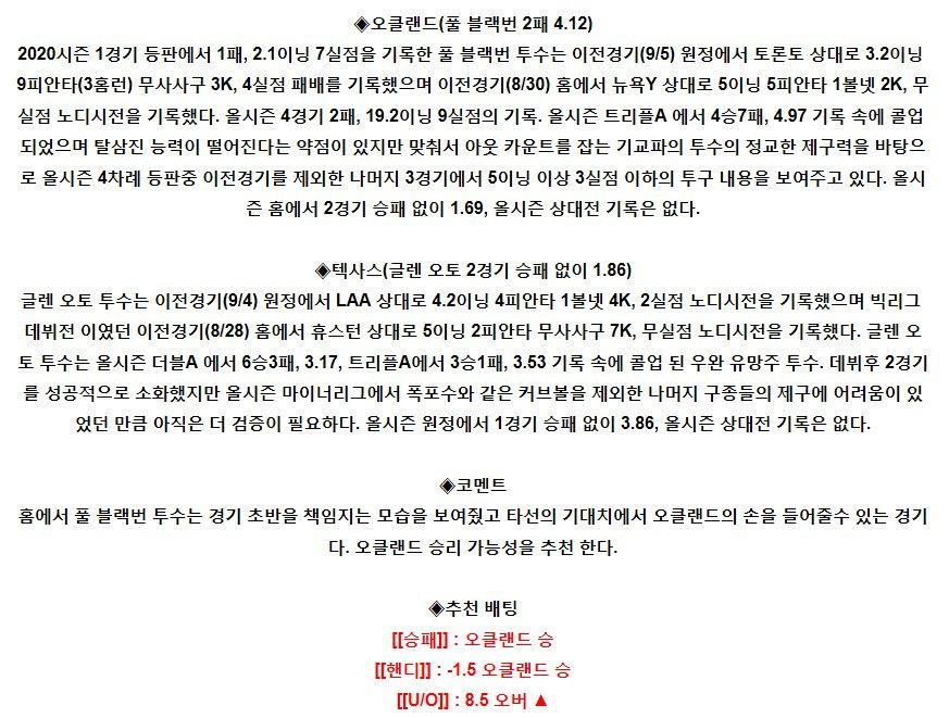 【MLB】 9월11일 시애틀 vs 애리조나 야구분석