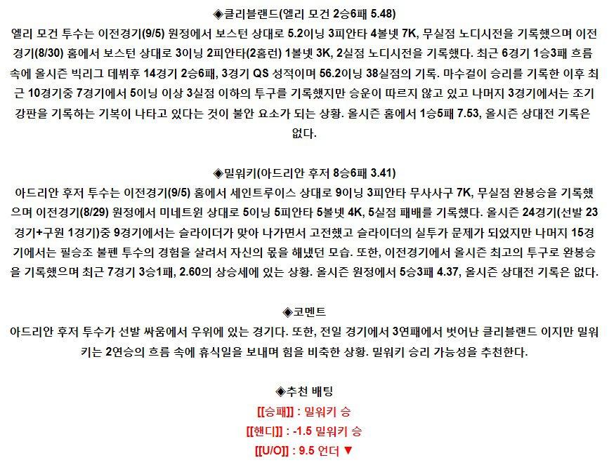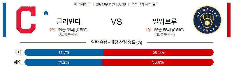 【MLB】 9월11일 클리블랜드 vs 밀워키 야구분석