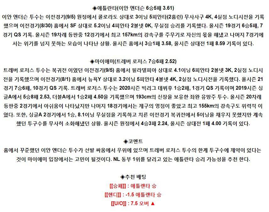 【MLB】 9월11일 애틀랜타 vs 마이애미 야구분석