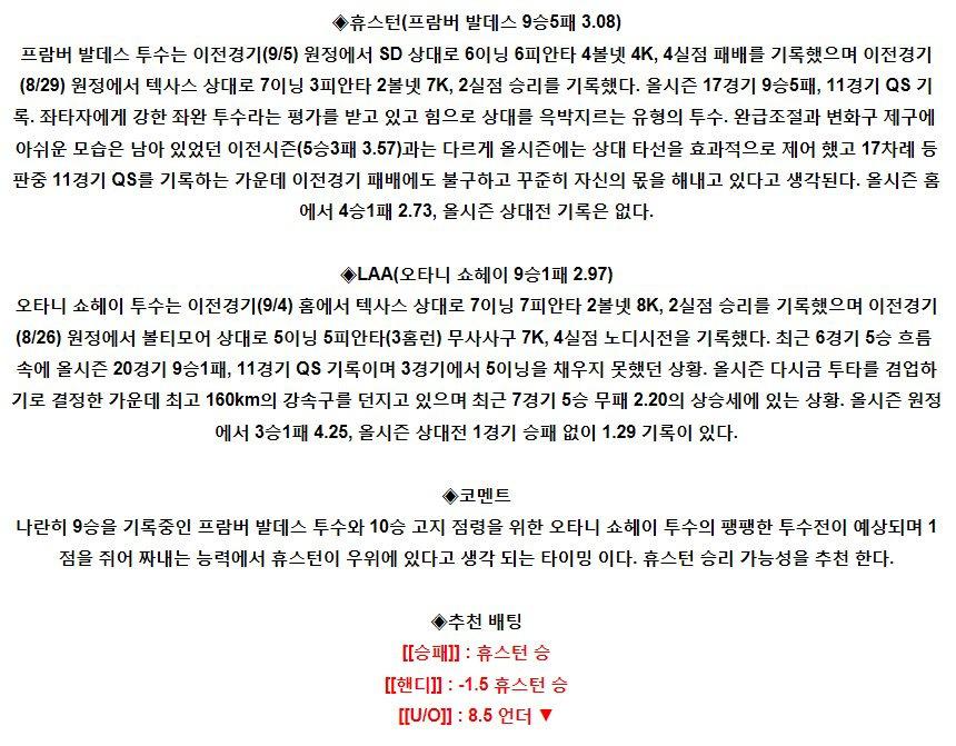 【MLB】 9월11일 휴스턴 vs LA에인절스 야구분석
