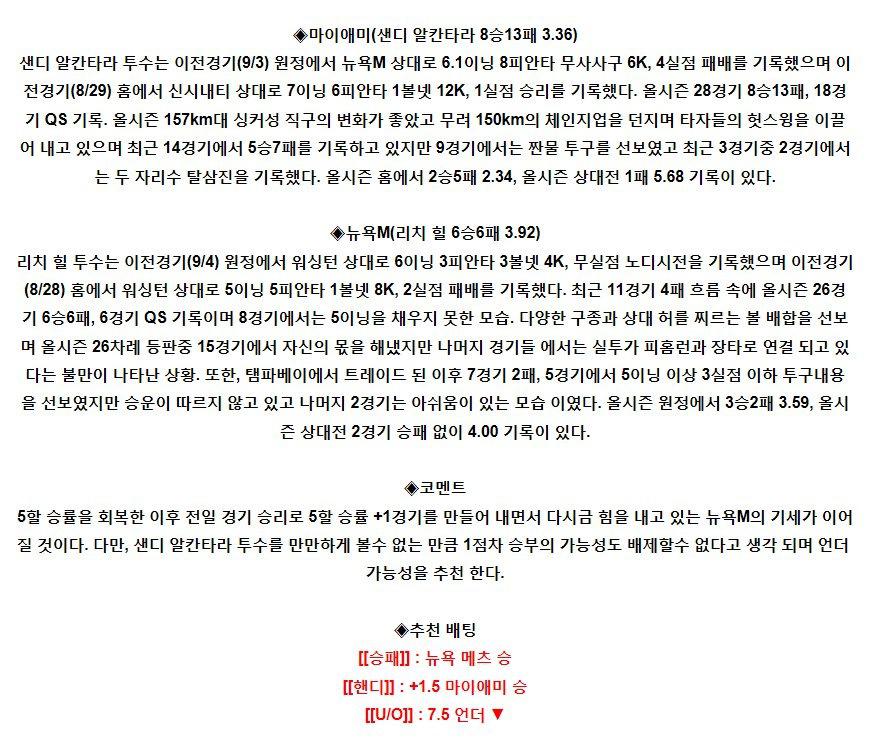 【MLB】 9월9일 마이애미 vs 뉴욕메츠 야구분석