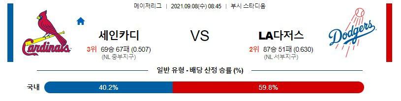 【MLB】 9월8일 세인트루이스 vs LA다저스 야구분석