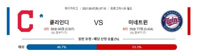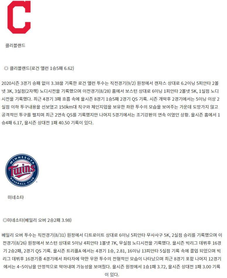 【MLB】 9월7일 클리블랜드 vs 미네소타 야구분석