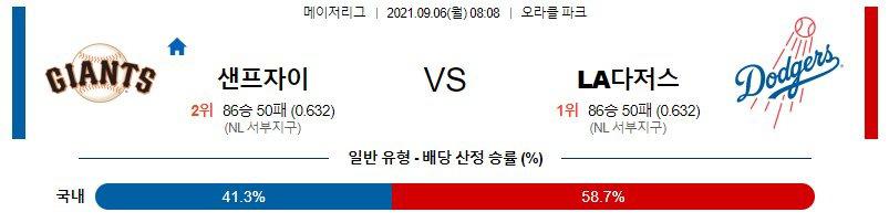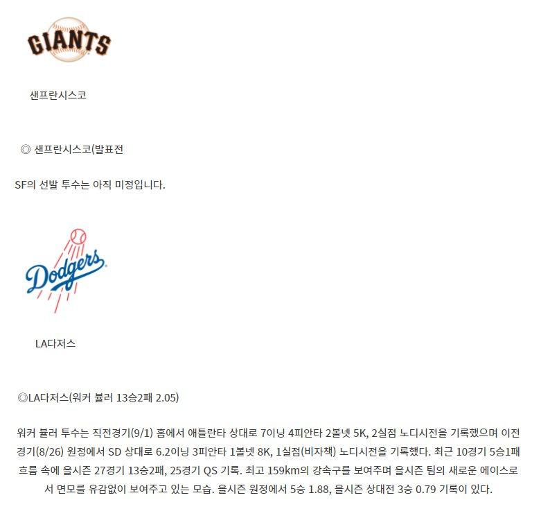 【MLB】 9월6일 샌프란시스코 vs LA다저스 야구분석