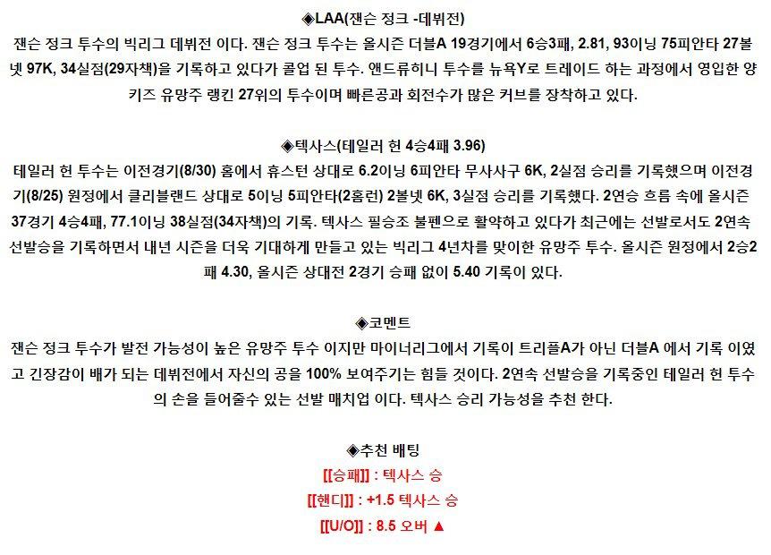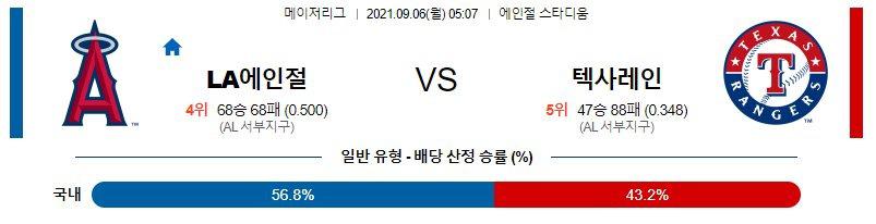 【MLB】 9월6일 LA에인절스 vs 텍사스 야구분석