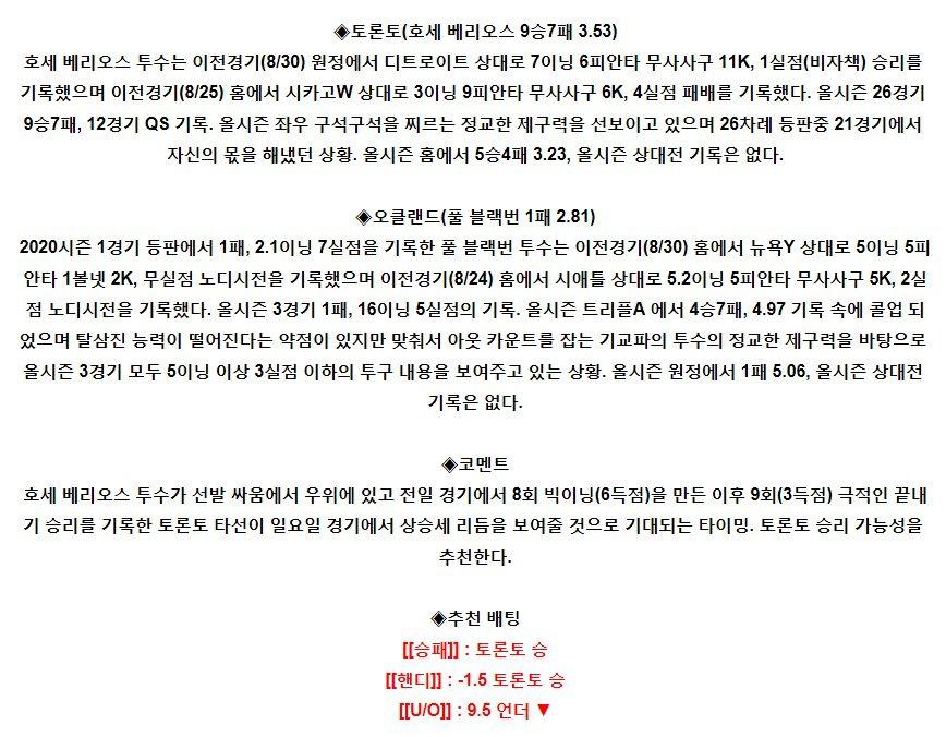 【MLB】 9월5일 토론토 vs 오클랜드 야구분석 야구중계 해외야구중계 해외야구분석 MLB분석 MLB중계