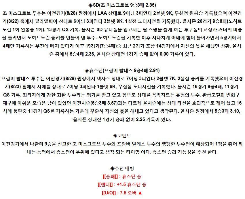 【MLB】 9월5일 샌디에이고 vs 휴스턴 야구분석 야구중계 해외야구중계 해외야구분석 MLB분석 MLB중계