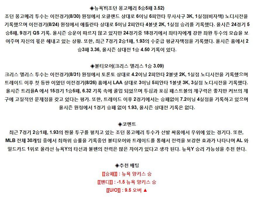 【MLB】 9월5일 뉴욕양키스 vs 볼티모어 야구분석 야구중계 해외야구중계 해외야구분석 MLB분석 MLB중계