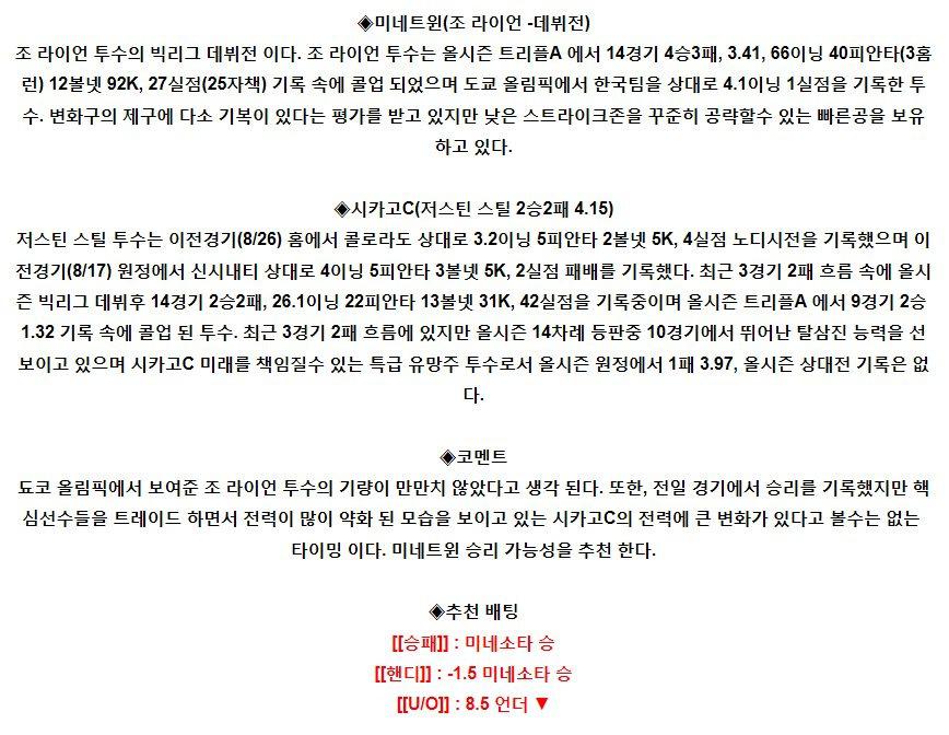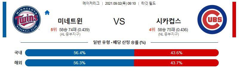 【MLB】 9월2일 미네소타 vs 시카고컵스 야구분석