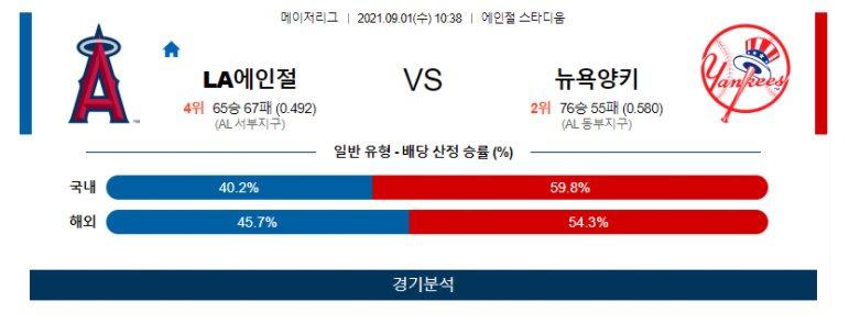 【MLB】 9월1일 LA에인절스 vs 뉴욕양키스 야구분석 야구중계 해외야구중계 해외야구분석 MLB분석 MLB중계