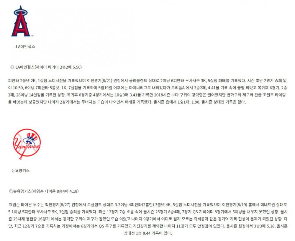 【MLB】 9월1일 LA에인절스 vs 뉴욕양키스 야구분석 야구중계 해외야구중계 해외야구분석 MLB분석 MLB…