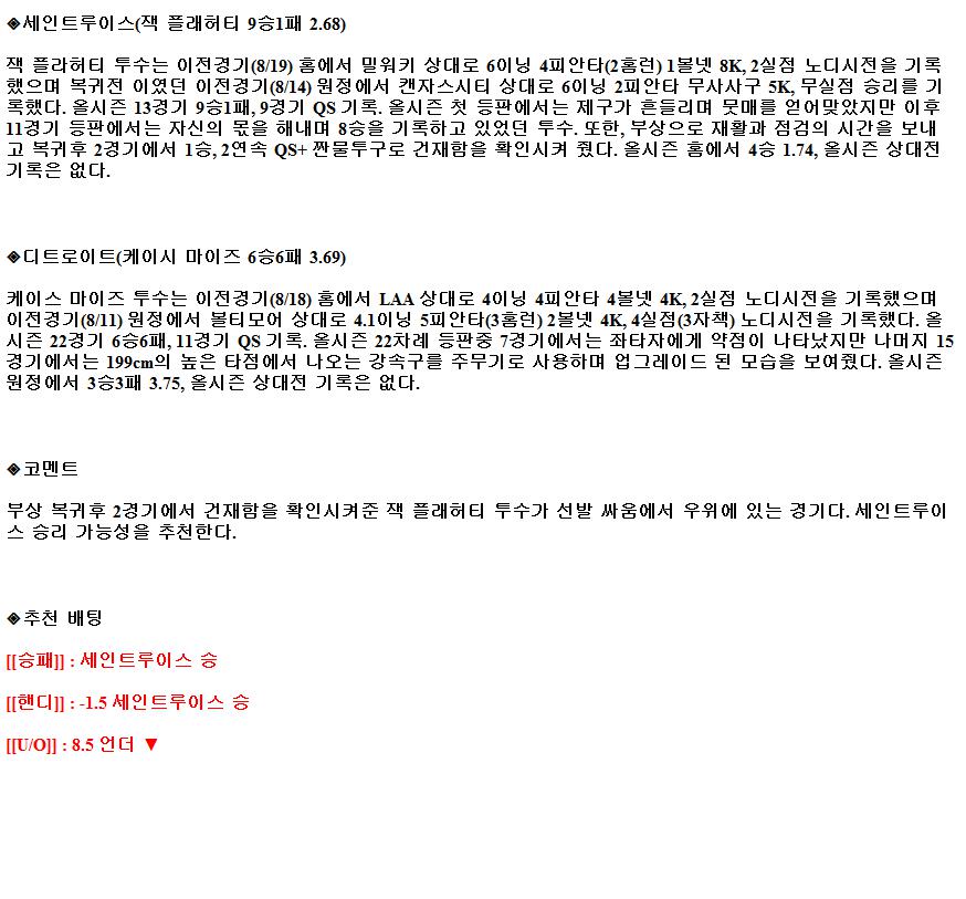 2021년8월25일 세인트루이스 카디널스 디트로이트 타이거즈 해외야구중계