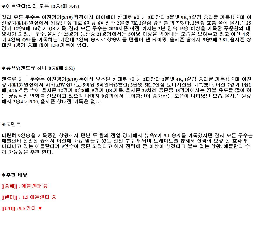 2021년8월25일 애틀랜타 브레이브스 뉴욕 양키스 해외야구중계