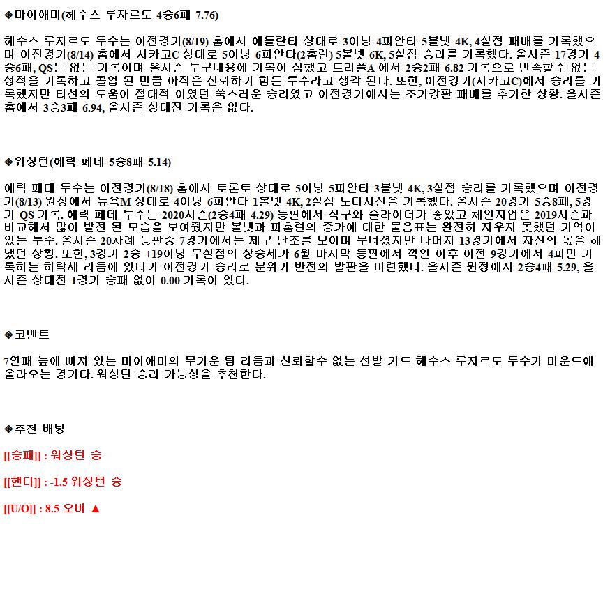 2021년8월25일 휴스턴 애스트로스 캔자스시티 로열스 해외야구중계