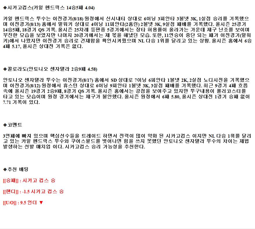 2021년8월24일 시카고 컵스 콜로라도 로키스 해외야구중계