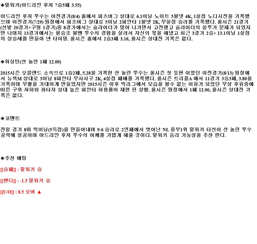 2021년8월23일 밀워키 브루어스 워싱턴 내셔널스 해외야구중계