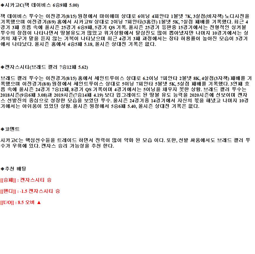 2021년8월21일 시카고 컵스 캔자스시티 로열스 해외…