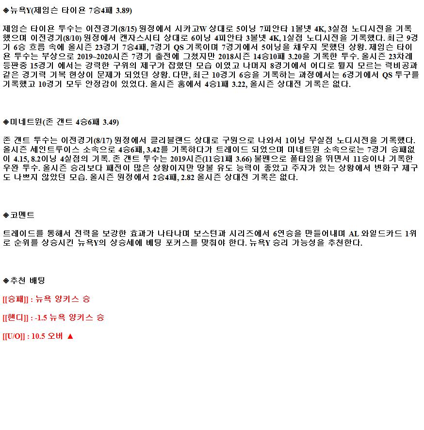 【NPB】 8월19일 요코베이 vs 한신 스포츠중계 스포츠분석 야구분석