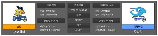 6월30일 NPB 요코하마 주니치 해외야구분석