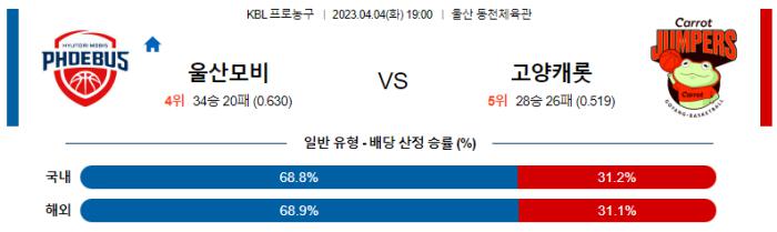4월 4일 19:00 KBL 울산 모비스 : 고양 캐롯