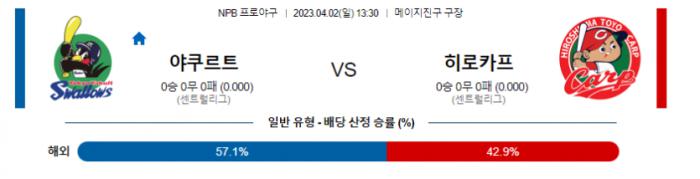 4월 2일 13:30 NPB 야쿠르트 : 히로시마