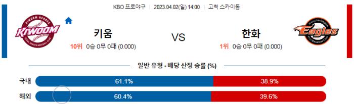 4월 2일 14:00 KBO 키움 : 한화