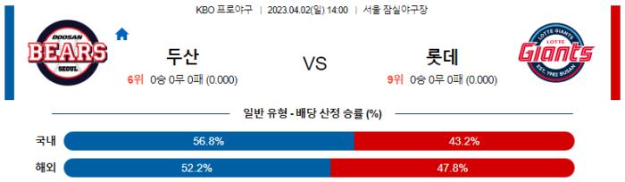 열람중 4월 2일 14:00 KBO 두산 : 롯데 메이저 2023.04.02 2211
