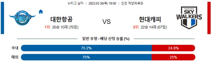 3월 30일 19:00 V-리그 남자 대한항공 : 현대캐피탈