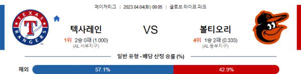 4월4일 MLB 텍사스 볼티모어 해외야구분석 무료중계 스포츠분석