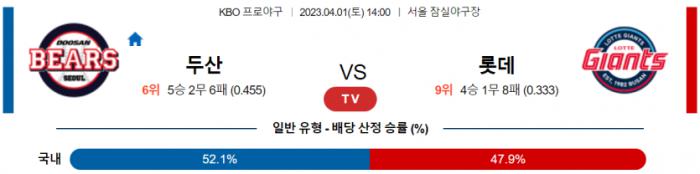 20승 에이스 출신 라울 알칸타라 투수가 일본무대에서는 적응에 실패했지만 국내무대에서는 위력적인 모습을 보일 것으로 예상된다. 반면, 스트레일리 투수는 시범경기 등판에서 2이닝 4실점 패배를 기록했고 2차례 시범경기에서 등판 모두 피안타 허용률이 높았던 상황. 선발 싸움에서 우위가 예상되는 두산 승리 가능성을 추천 한다.