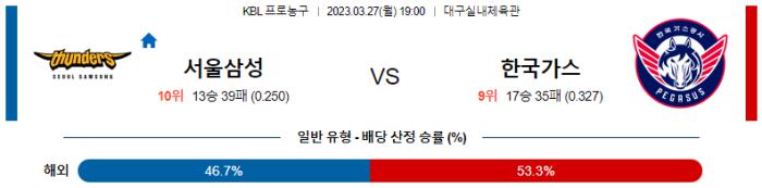 3월 27일 19:00 KBL 서울삼성 : 한국가스공사