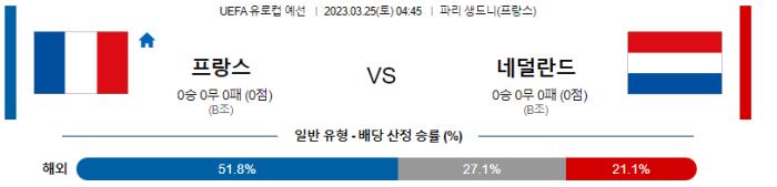 UEFA 유로컵 예선 3월 25일 04:45 프랑스 : 네덜란드