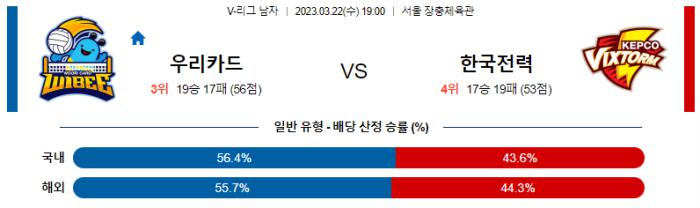 3월 22일 19:00 V-리그 남자 우리카드 : 한국전력